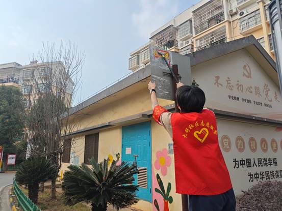 完成墙面清理后,志愿者们又俯身弯腰,拔除绿化丛中的杂草,捡拾烟头、纸屑等隐藏的垃圾碎屑。大家不怕脏、不怕累,干劲十足,不放过任何一个卫生死角。春寒料峭,但劳动热情不减,穿梭忙碌的“红马甲”成为社区里最温暖的风景。