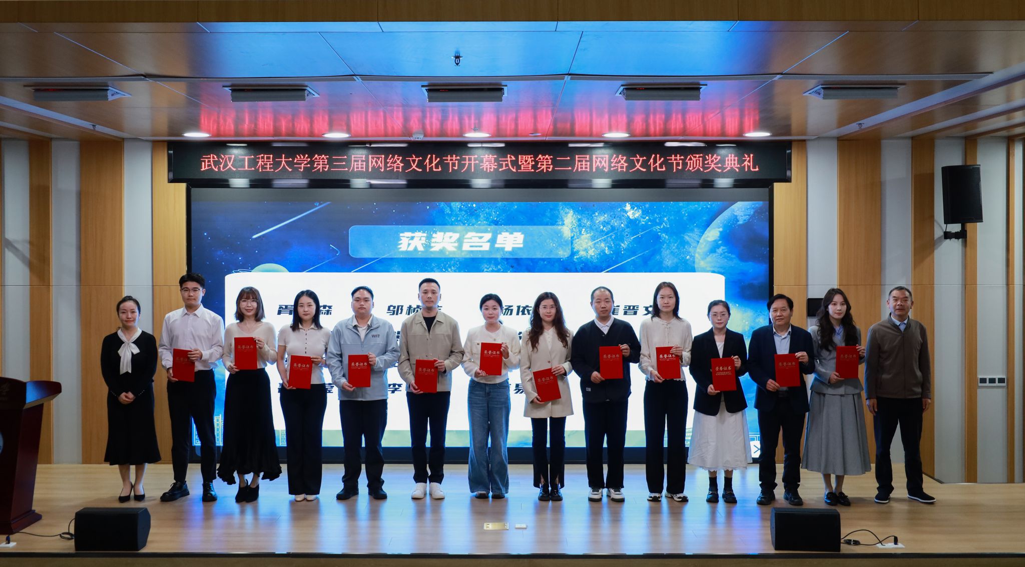 颁奖典礼上,与会领导分别为第二届网络文化节音频类、摄影类、AI设计类、视频类一等奖获得者,优秀指导教师及最佳组织单位颁奖。活动集中展示了《与工大同行》《Welcome to WIT》《穿越时空的“化”语》《AI花式映武工》等一批主题鲜明、视角独特、形式多样的优秀获奖作品,充分展现了学校师生昂扬向上的精神风貌和出色的创新创造能力。
