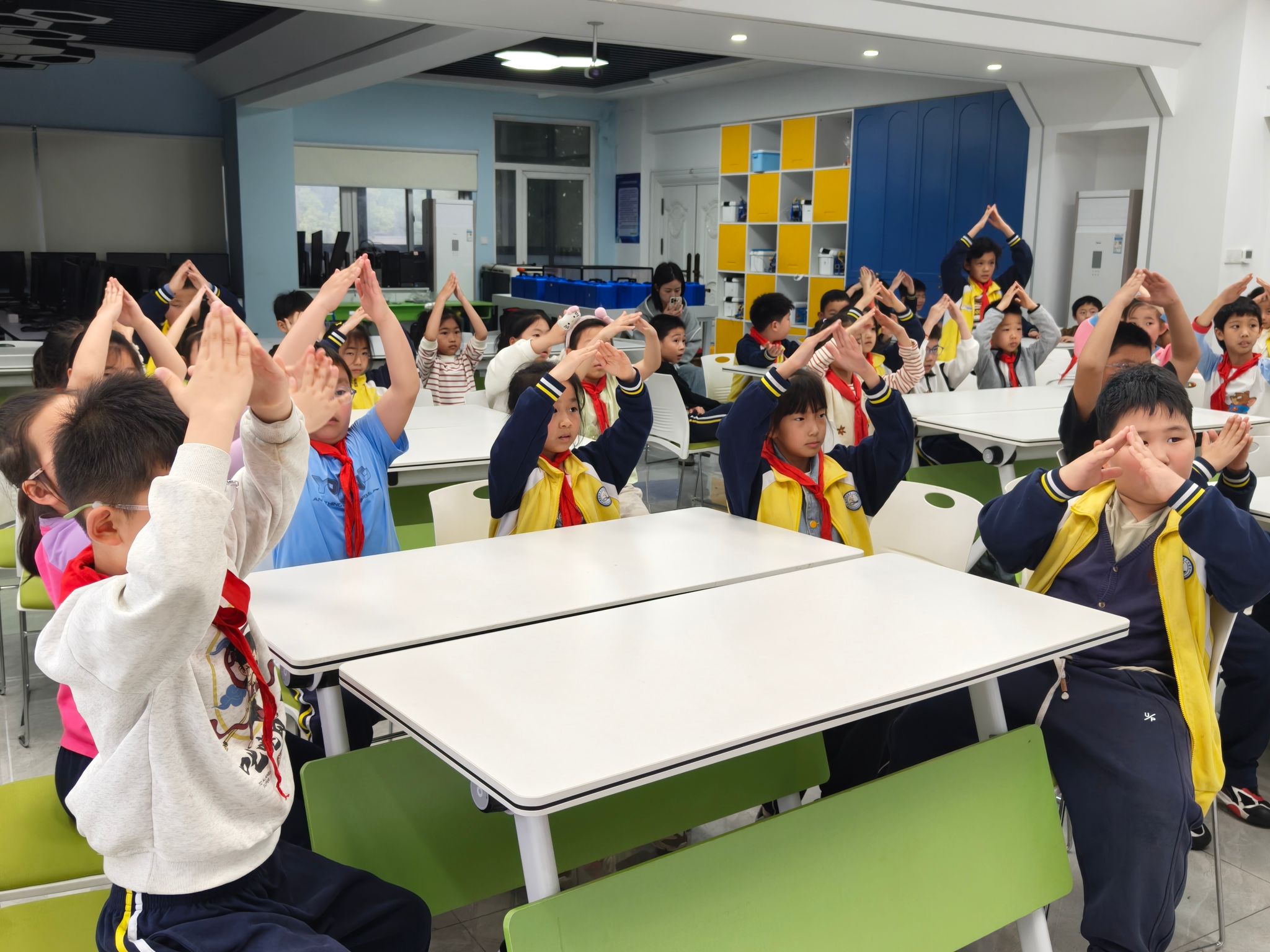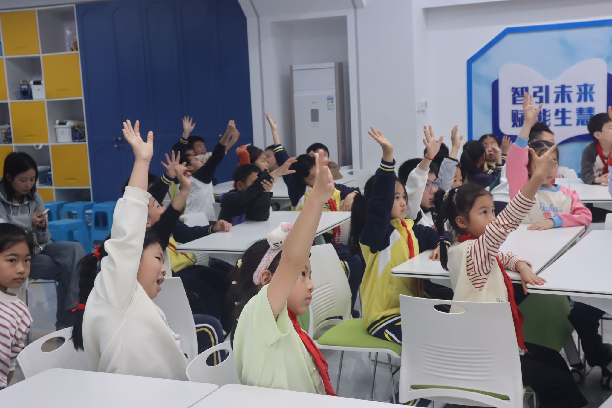 趣味问答环节孩子们举手抢答
