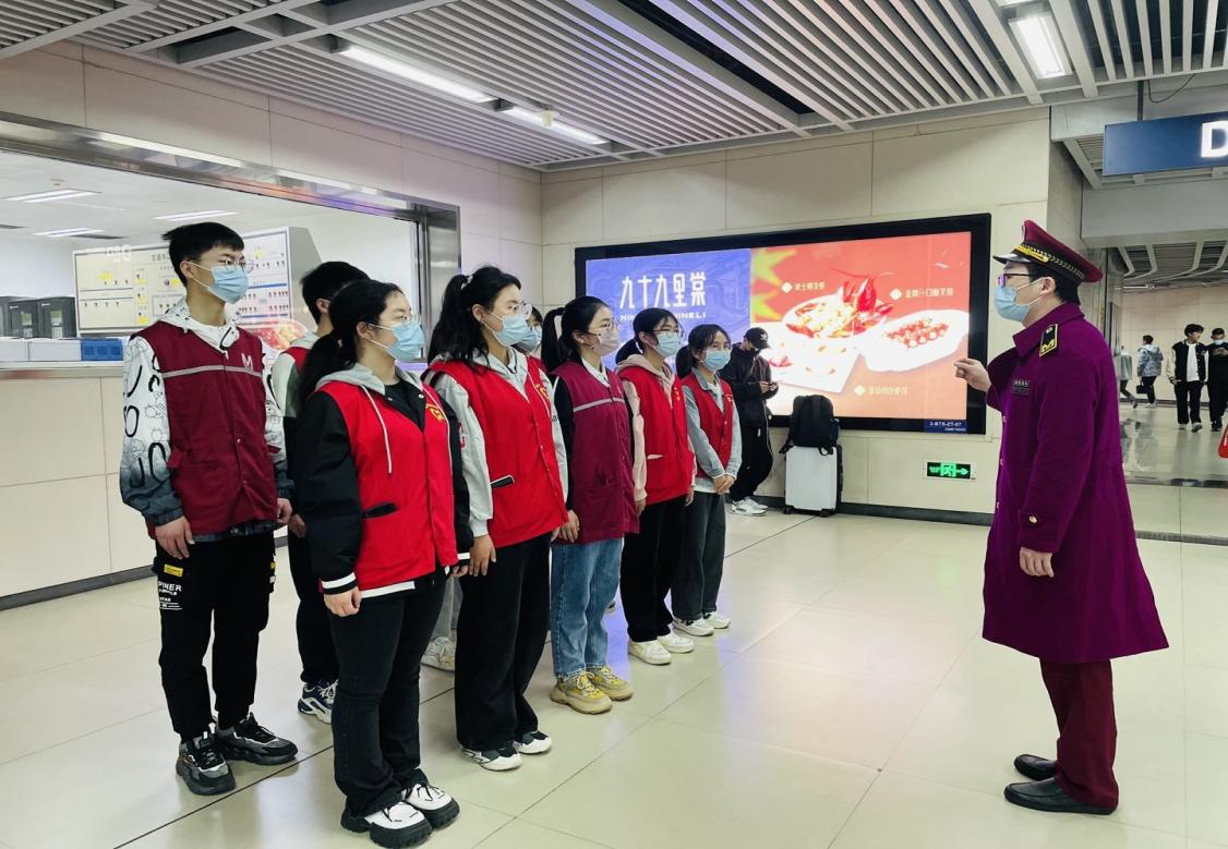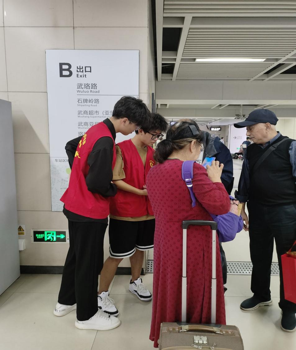 中国青年网武汉11月23日电(通讯员 梁嘉祺 邬晓然 阮丽)11月18日、19日,武汉工程大学夏花志愿服务队在宝通寺地铁站开展了地铁志愿服务活动。为丰富志愿活动载体,打造服务领域多样化和服务活动品牌化,激励青年大学生在服务群众、奉献社会中发挥作用,武汉工程大学土木工程与建筑学院夏花志愿服务队与武汉地铁集团签订了长期共建服务协议,坚持每周末在宝通寺地铁站进行志愿服务活动,用实际行动践行新时代青年的社会使命。