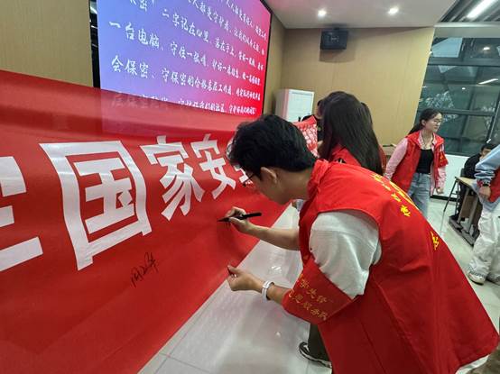 宣讲结束后,全体参会人员在“国家安全我承诺”主题横幅上郑重签名,以庄严仪式表达维护国家安全、严守工作秘密、守护居民隐私的坚定决心。此次签名活动凝聚了基层安全共识,推动国家安全理念入脑入心,引导工作人员以实际行动当好社区安全“守护者”、居民隐私“守护人”。